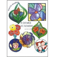 "A Shower of Flowers" by Mari Stein. Delightful patterns of flowers in a wide variety of styles and colors. There are window designs, suncatcher designs, realistic designs, and abstract designs. There are 23 patterns for any skill level in this book. Full-color photographs and full-sized patterns included.