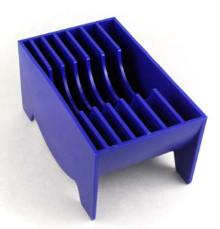 This copper foil dispenser is a must addition to every studio. Seven sections of this tool accommodate 5/32" to 1/2" widths of copper foil, and each is slotted at the bottom to allow the foil to dispense. Larger slots may hold scissors, trim knife, & lathekin/fid.