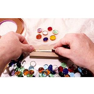 Jim's Wonderful Nugget Foiler. Foiling glass nuggets and gems has never been easier than with this great gadget. Place foil in groove adhesive side up. Place edge of nugget, rondell, etc. at end of foil, roll forward while pushing down, and overlap foil and cut. No more hassles.